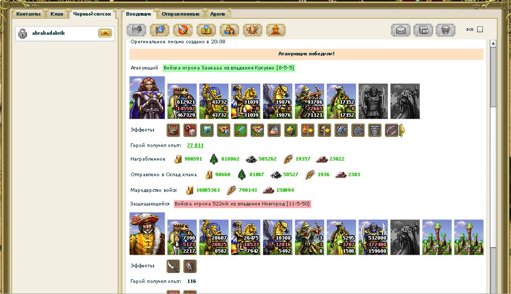 Про всех "Храмящихся" и Тех кто при первом шпике прятал армию в подвал я промолчю... и не буду кидать отчеты где я тоннами выносил ресы из столиц топовых по мощи игроков клана Predators. Додам один слив - чувак просто не читал чат клана наверное или был слишком самоуверен (я предполагаю в чате писали о моем присутсвии неоднократно) , к сожалению "самоувереность улетучелась" в последний момент... армию в полтора раза больше моей с кучей найма - спрятал в подвал... но пойманый возврат естественно я слил...