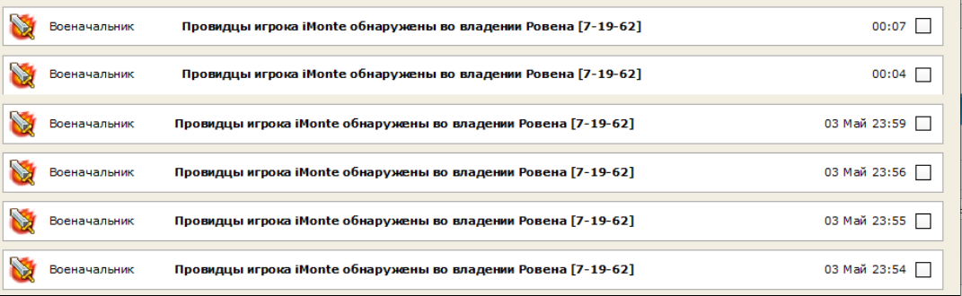 а кто там владелец на данный момент ?DMTelur писал(а): 16 минут, я проверял провами всё так что-б не проскользнул никто, но во время атаки в городе менялись сапоги на легионерки, а после атаки в городе не было героя в легах и боевого. Думаю, он был в невиде, а по какой причине он вообще мелькал, по какой причине отсутствовал в городе и почему при этом армия не спряталась - додумайте сами