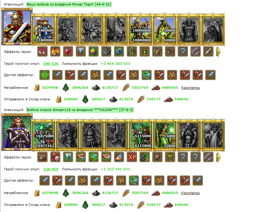 Я третий раз пытался подъехать за пару месяцев, но вскрытия королевства всё не давали результатов, ударил провами, там возврат минут 10, смотрю реакцию минут 5 после возврата, дёрнул зама, открылся и вышел наобум, даже не кастились. Больше интересно было кто в деф ночью выйдет, а оказалось что он так и проспал всё. Боевой там чуть одетее, с перчаткой даже что у них в клане редкость - там чуть потерь выходило в лесу под магичками этими - что-то типа 200к луков на двоих, вроде.4178 писал(а): Он выставился или афкашил с полководцем в гарнизоне?