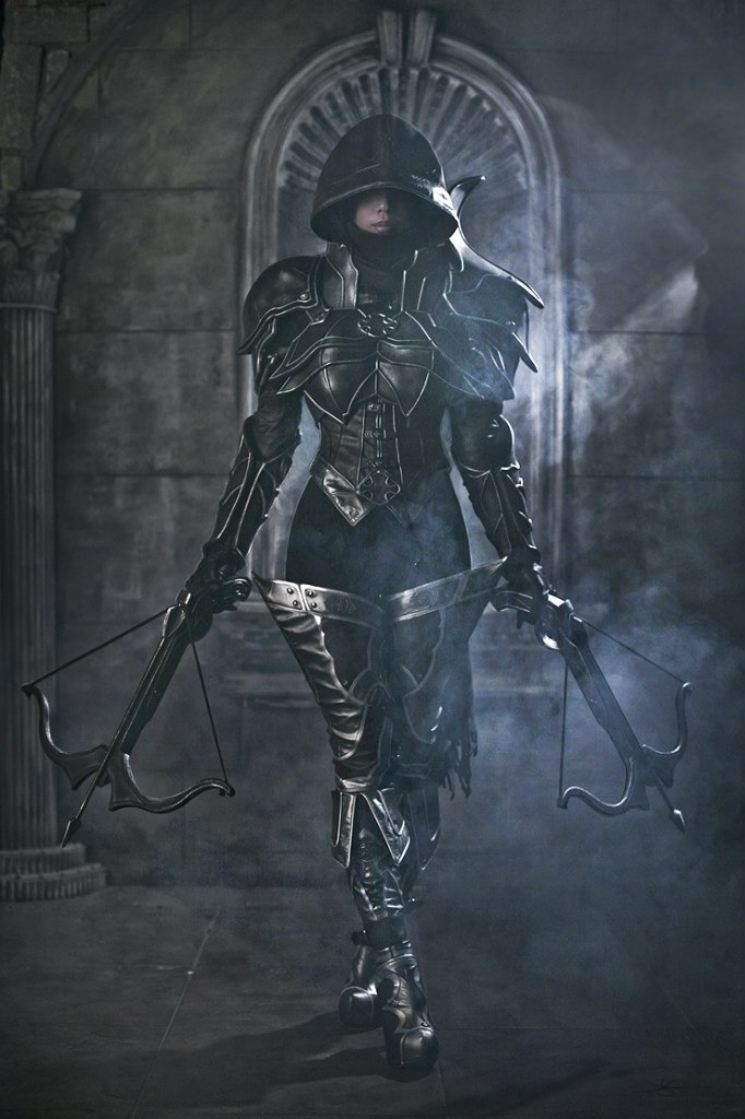 Все на мгновение замерли, не веря своим глазам. Достав оба арбалета, она пошла вперед, убивая нежить. Стрелы пронзали их черепа, пробивали броню. Каждый ее шаг, каждый выстрел, каждое движение ее было наполнено величием и непоколебимой верой. Убрав арбалеты, она, не останавливаясь, достала со спины мечи и, уйдя от удара скелета, сбила ему голову. Я приподнялся. Подойдя к Скрипу, она вступила с ним в схватку, упорно не уступая ему, отбивая удары. Я подбежал к нему. Обернувшись ко мне, он в тот же миг остановил Ризу и отбросил ее магическим ударом. Уйдя от удара, он ухватил меня за шею, сжимая её.