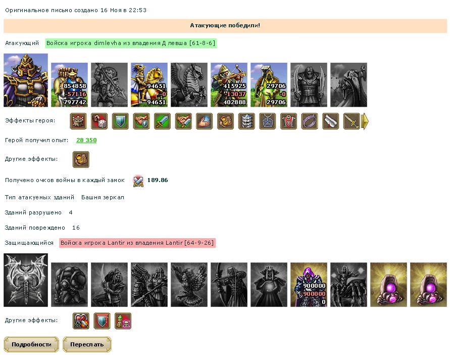 Ну дааа. Большой муравей. Особенно если посмотреть, что у нападающего только подушка больше, чем всё, что есть у защитника. И одних только луков хватит, чтоб всех хилов защитника на 0 помножить за один раунд.lyss писал(а): муравей в полтора ляма наймов и 66к хилов![]()